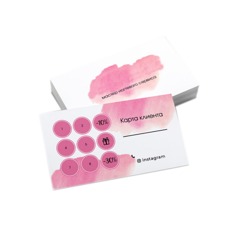 • Каждый 10 маникюр со скидкой 30%. Такую акцию можно отмечать на специальной визитке. Это даст стимул и азарт вашему клиенту.